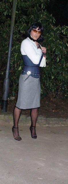 | Janine im Park und soooooooo alleine. Diesmal mit feinen schwarzen Nahtnylons. |