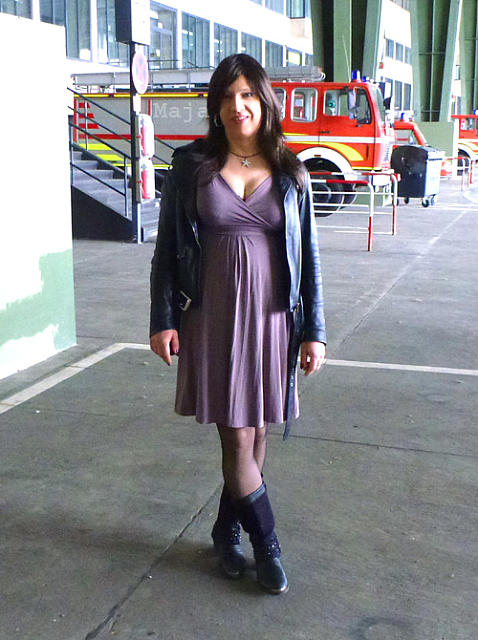 Lederoutfit auf dem Schrottplatz
