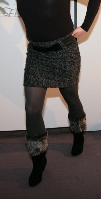 Grauer Rock, graue Strumpfhose und schwarze Kurzstiefel |