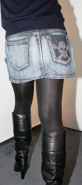 | Jeanette im Mini und blickdichten Strumpfhosen |